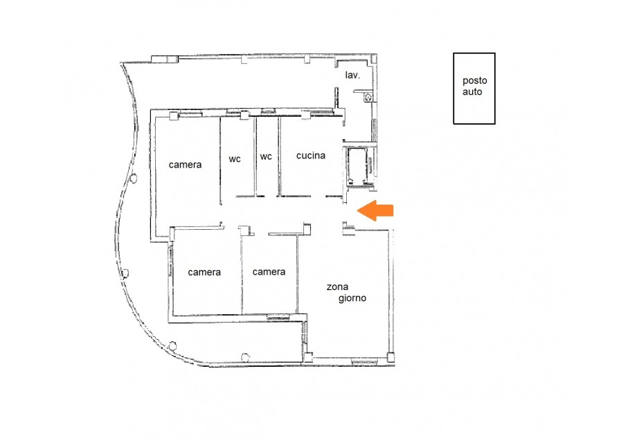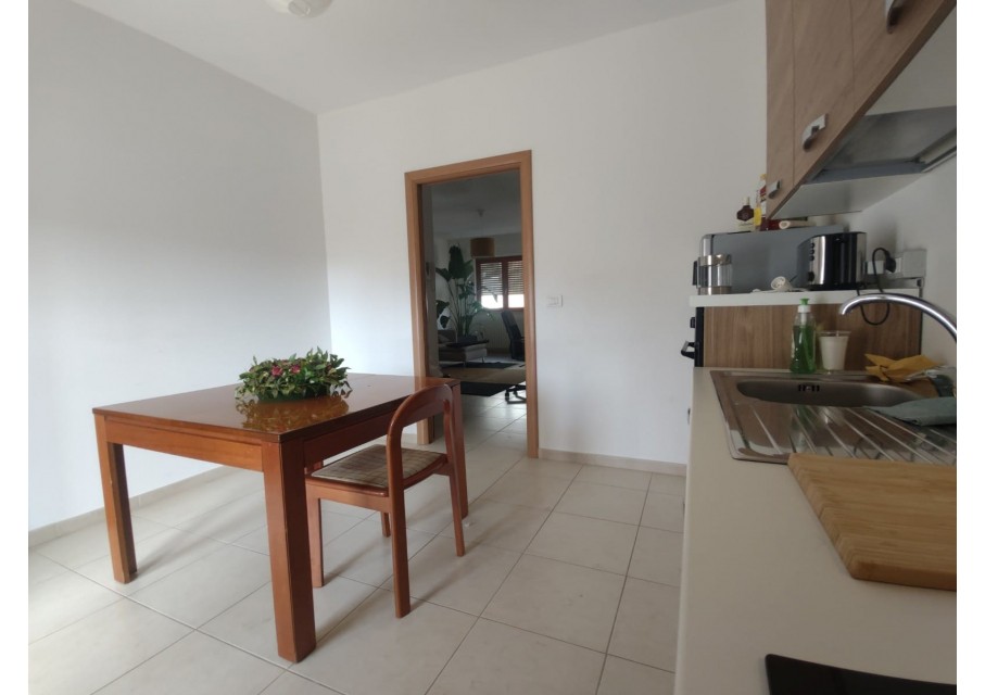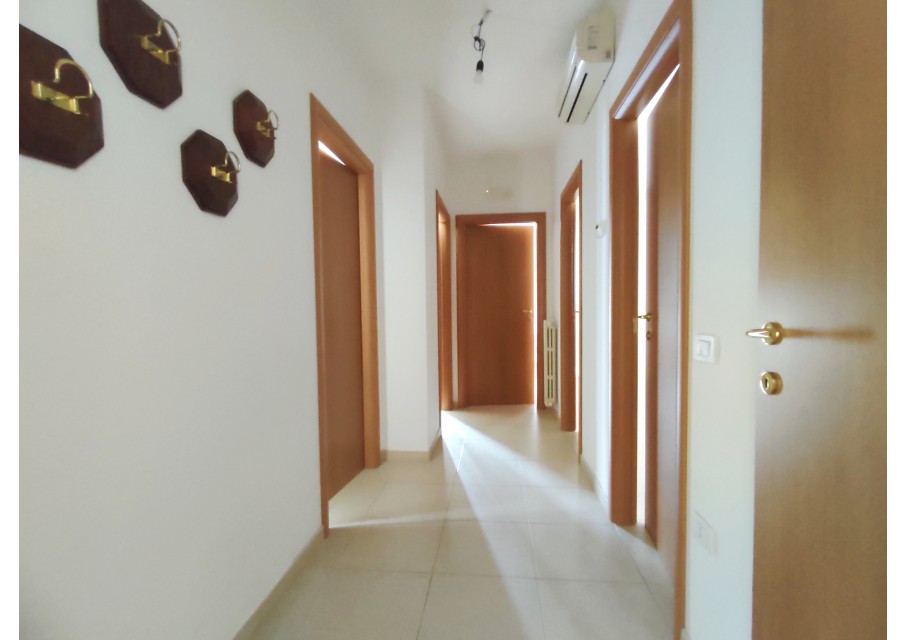 L' abitazione ha una superficie di circa 120 mq e si compone di ingresso, ampio soggiorno, cucina abitabile con vano ripostiglio, tre camere da letto e due bagni.