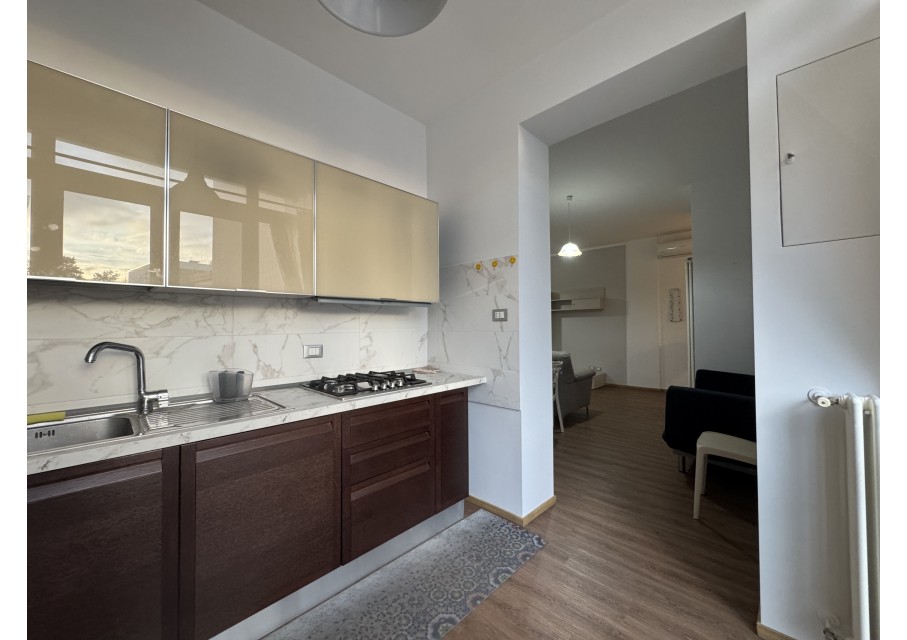 L'immobile, completamente arredato, è composto da ingresso in comoda zona giorno, cucina, disimpegno, spaziosa camera matrimoniale, cameretta, bagno padronale e lavatoio.