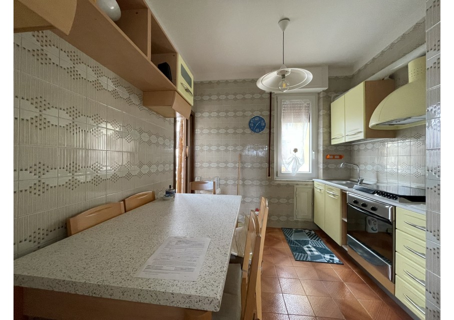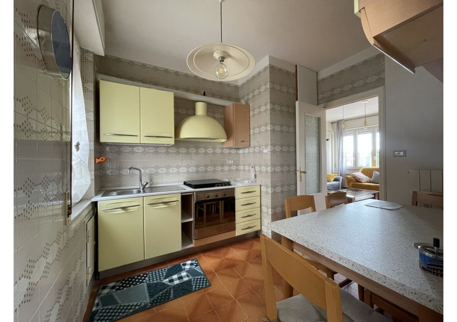 L'immobile, completamente arredato, è composto da ampia e luminosa zona giorno con balconcino, cucina abitabile, disimpegno, tre camere da letto oltre bagno e lavatoio.