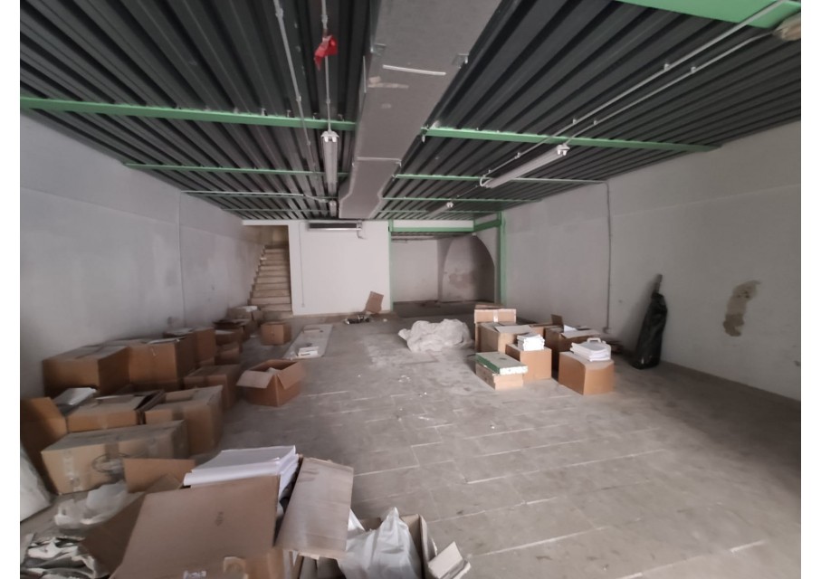 -140 mq circa, al piano strada, con accesso tramite una serranda elettrica, distribuiti in un vano principale con bagno ed uno retrostante con finestra;