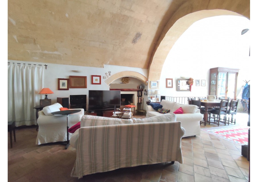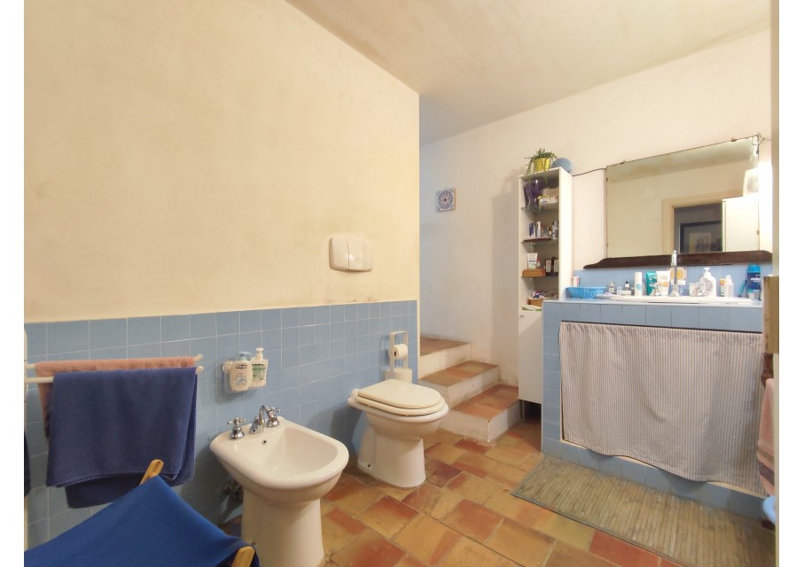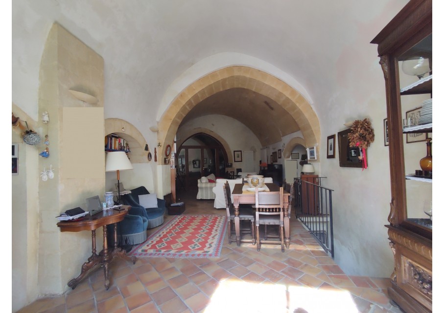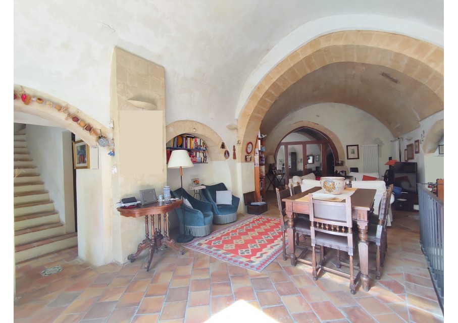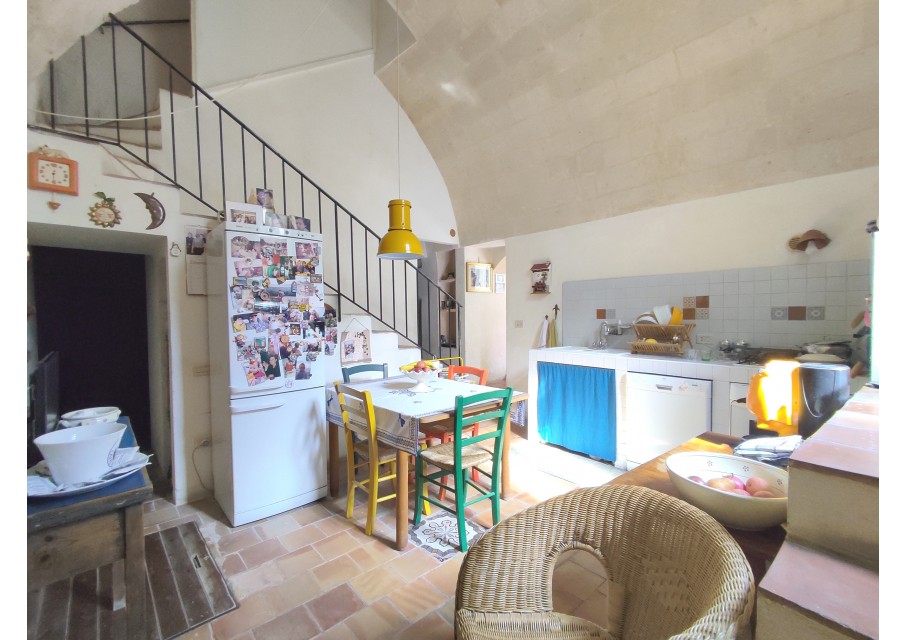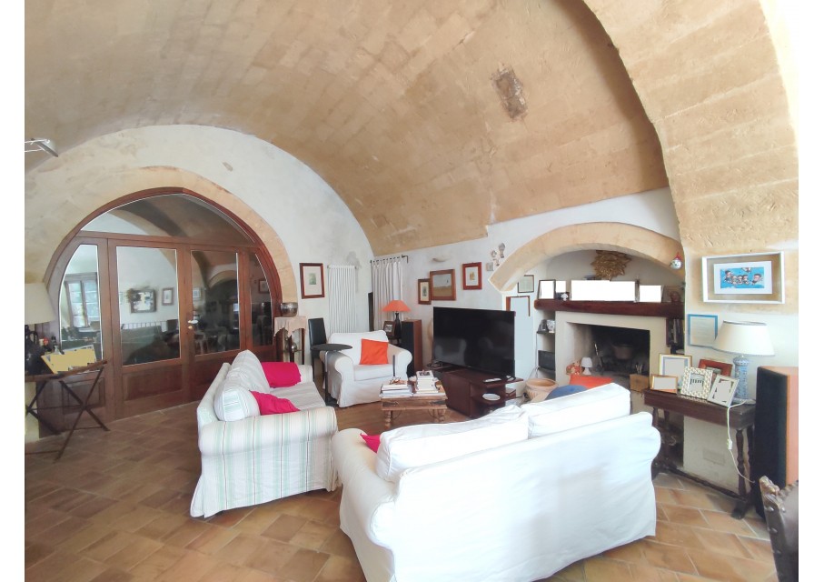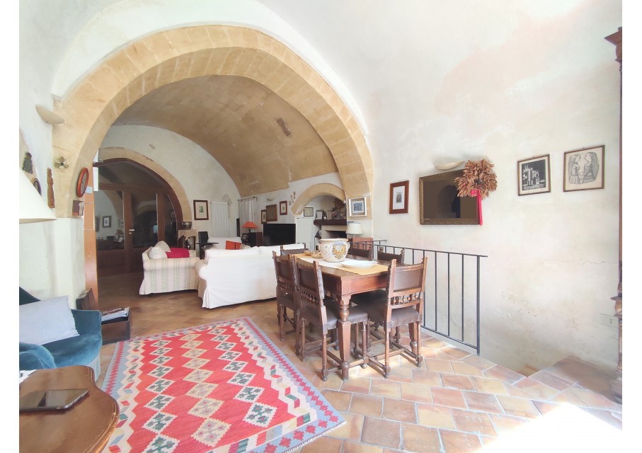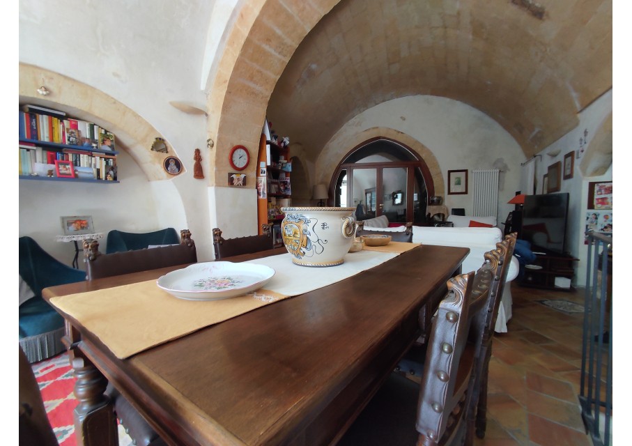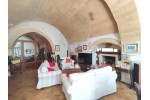La zona giorno, inoltre, è seguitata da un deposito di circa 35 mq, separata da un' ampia vetrata ed una cisterna, tipica della zona, attualmente allo stato rustico posta sottostante e con accesso immediato dal soggiorno.