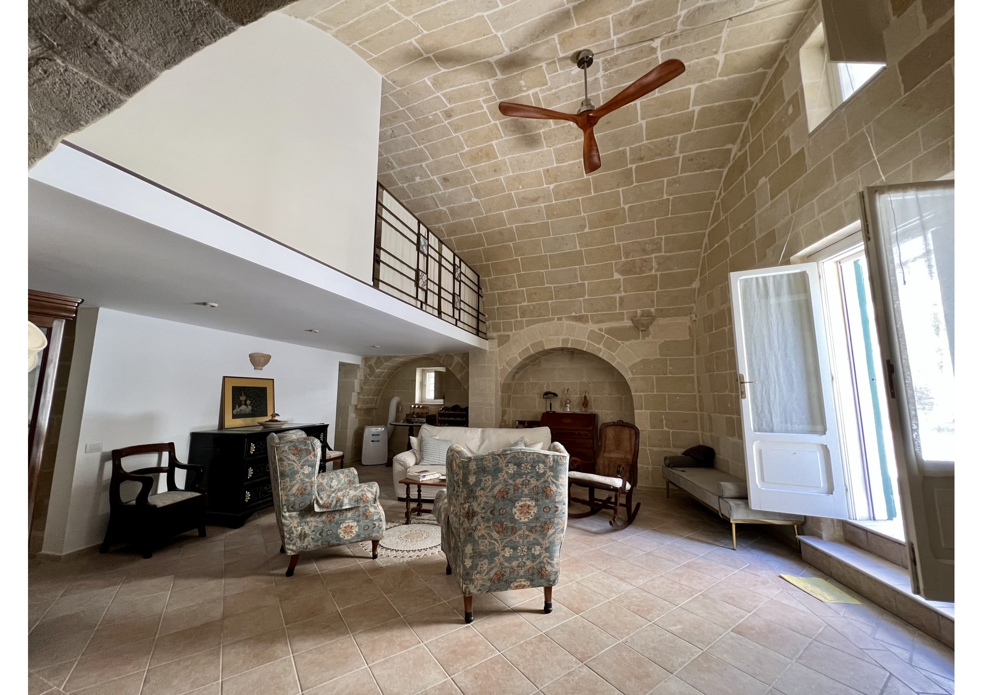 L'immobile, posto a piano terra, è composto da due spaziosi ambienti, entrambi soppalcati ed ognuno con il suo ingresso indipendente. Da un lato troviamo un'ampia sala da pranzo dotata di camino e comodo bagno e dall'altro un elegante e raffinato salotto.