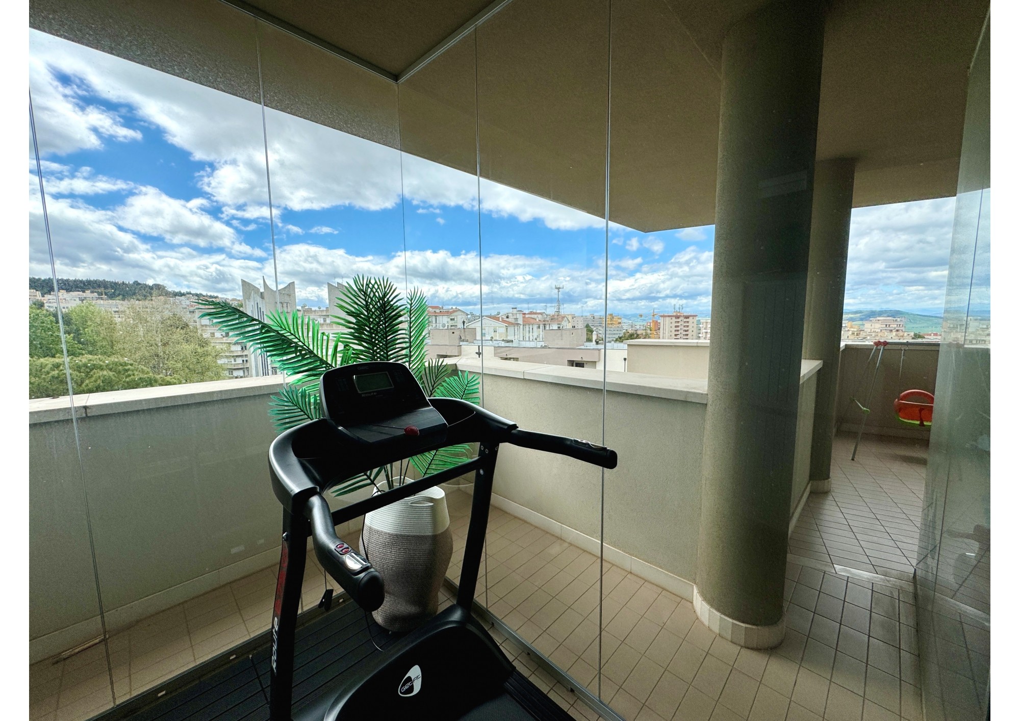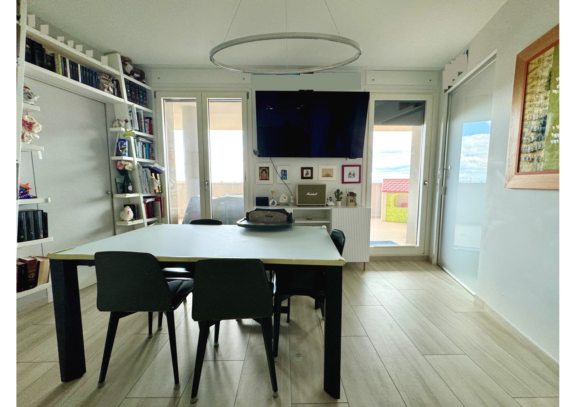 Una stupenda terrazza panoramica di circa 40 mq che serve tutta la zona giorno è stata chiusa per una parte da vetrate per riservare uno spazio della casa ad attività di svago.