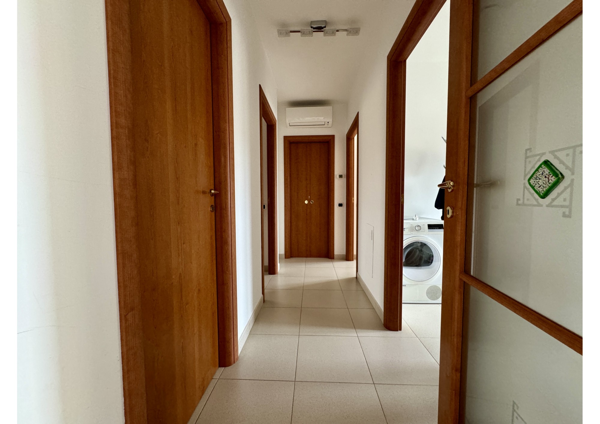L'immobile, ottimante tenuto e ben distribuito nei suoi spazi, è composto da ingresso in comoda zona giorno servita da balcone, cucina abitabile anch'essa con balcone, disimpegno, ampia camera matrimoniale, due camerette e due bagni.
