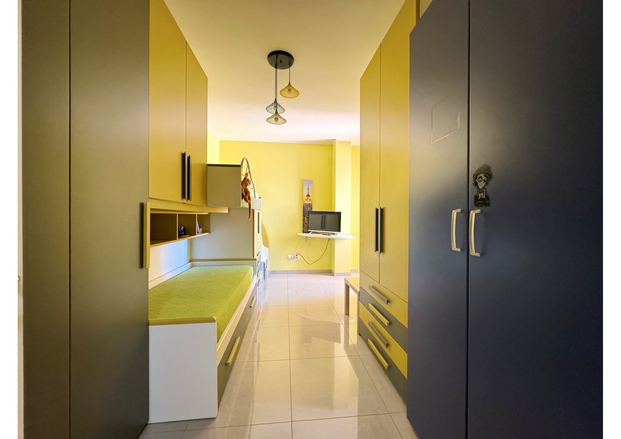 Completano la soluzione un garage, con accesso diretto alla tavernetta, e due posti auto all'interno di un cortile condominiale dotato di cancello elettrico.