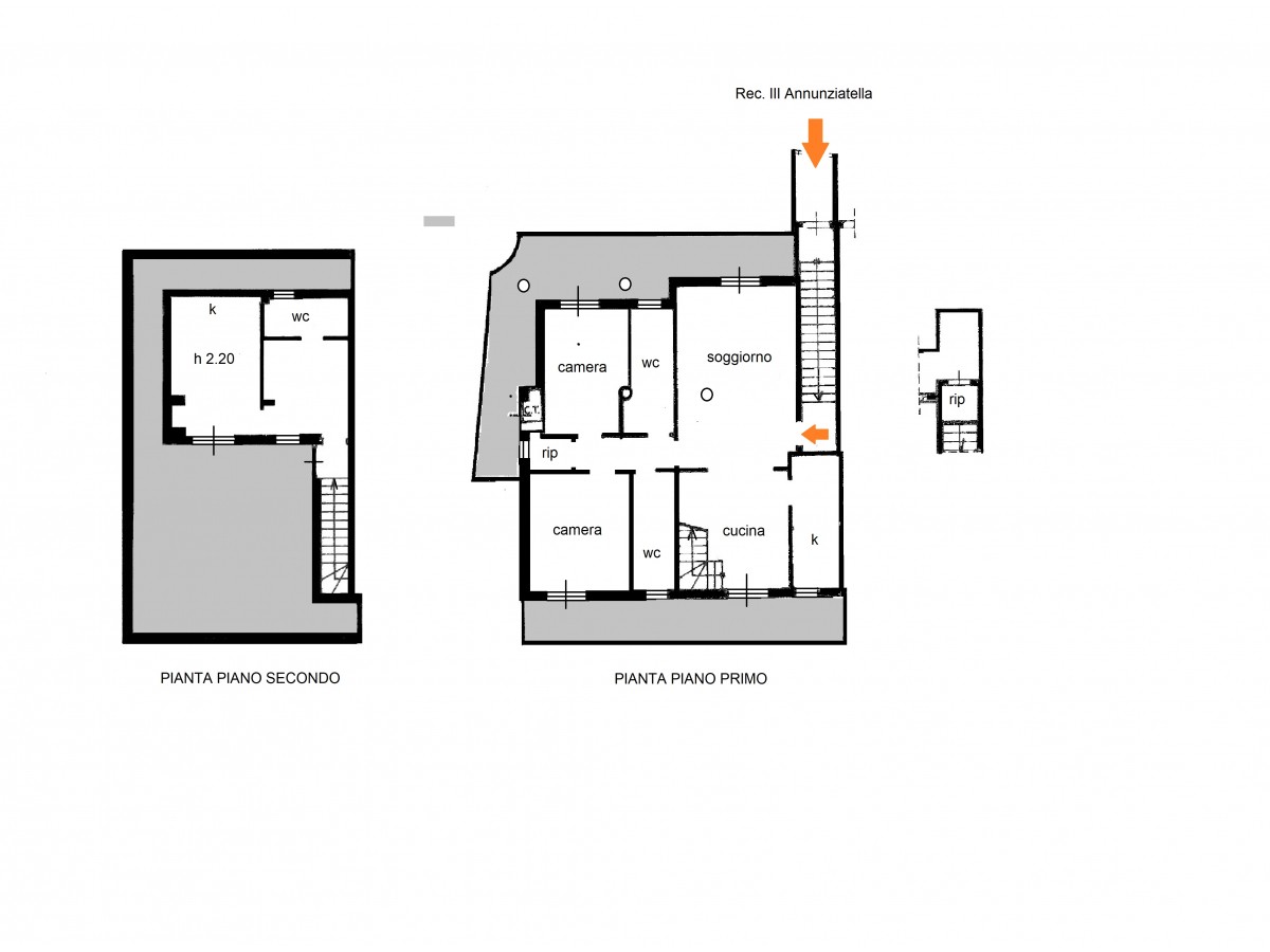 Una scalinata d'ingresso conduce al primo livello, in cui troviamo un ampio soggiorno/sala da pranzo con camino e cucinino; un breve disimpegno introduce alla zona notte composta da due comode camere da letto, bagno padronale, doppio servizio e ripostiglio. Completano il primo livello due ampi balconi a servizio sia della zona giorno che della zona notte.