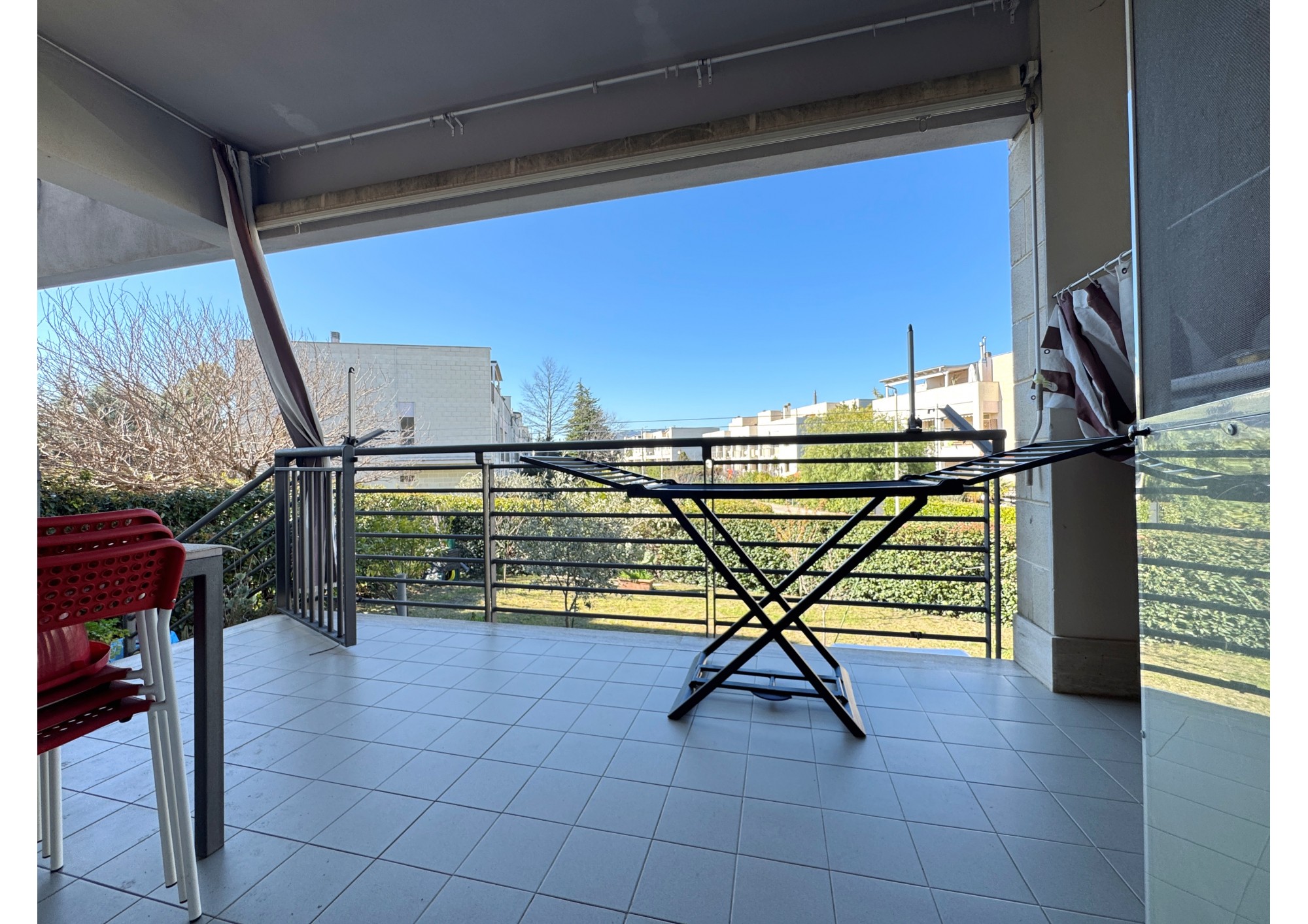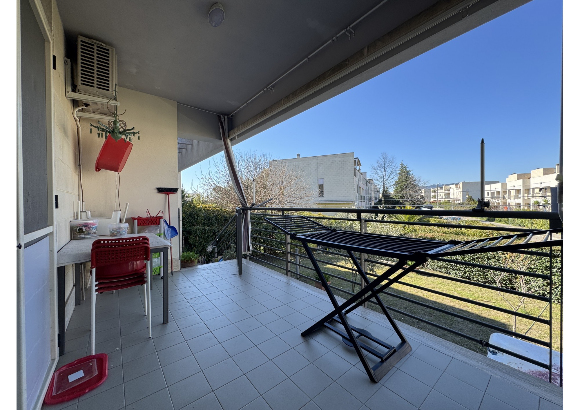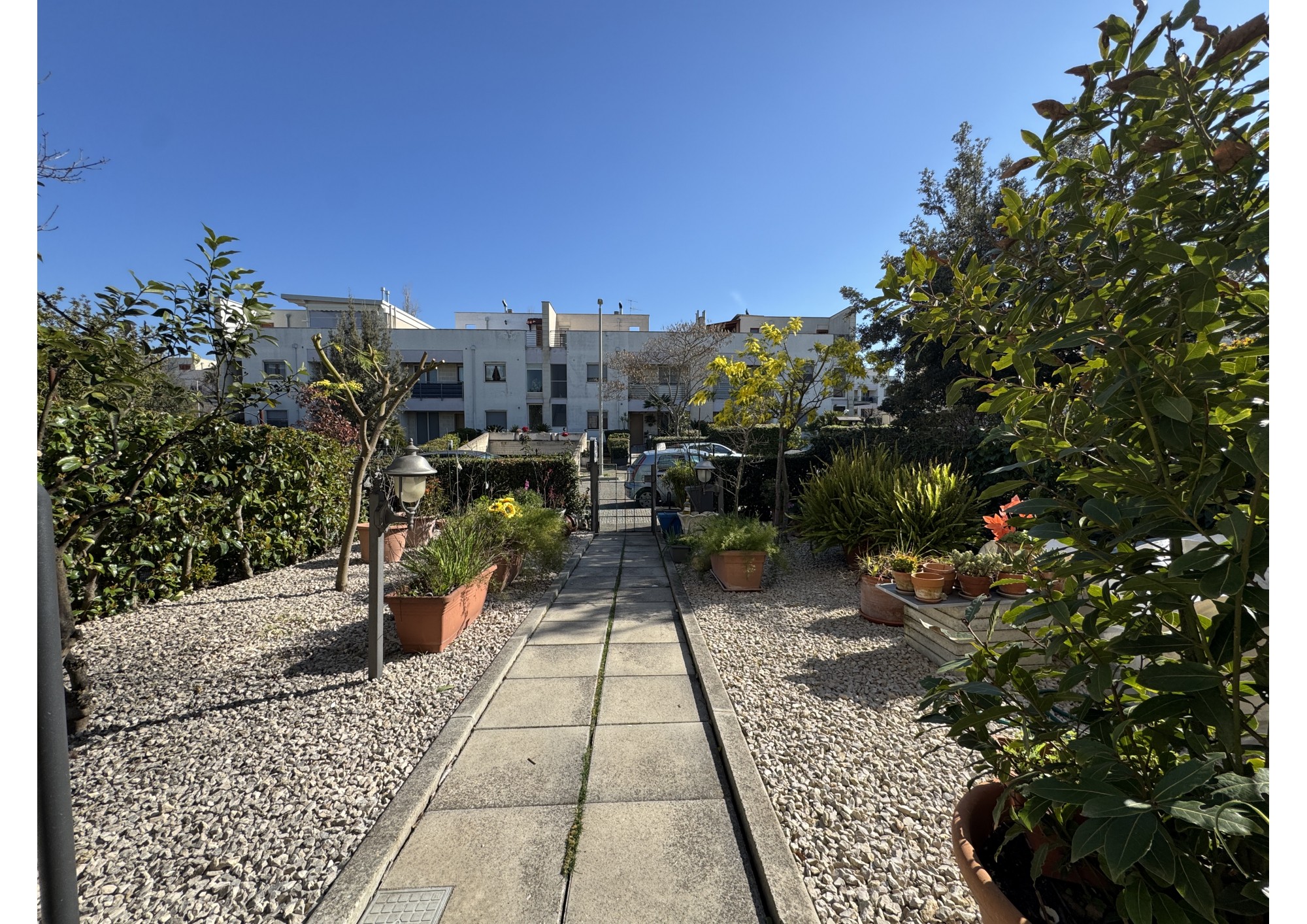 L'abitazione, con ingresso dal giardino di proprietà esclusiva, è composto da accesso in soggiorno/cucina con balcone verandato e direttamente collegato ad un secondo giardino.