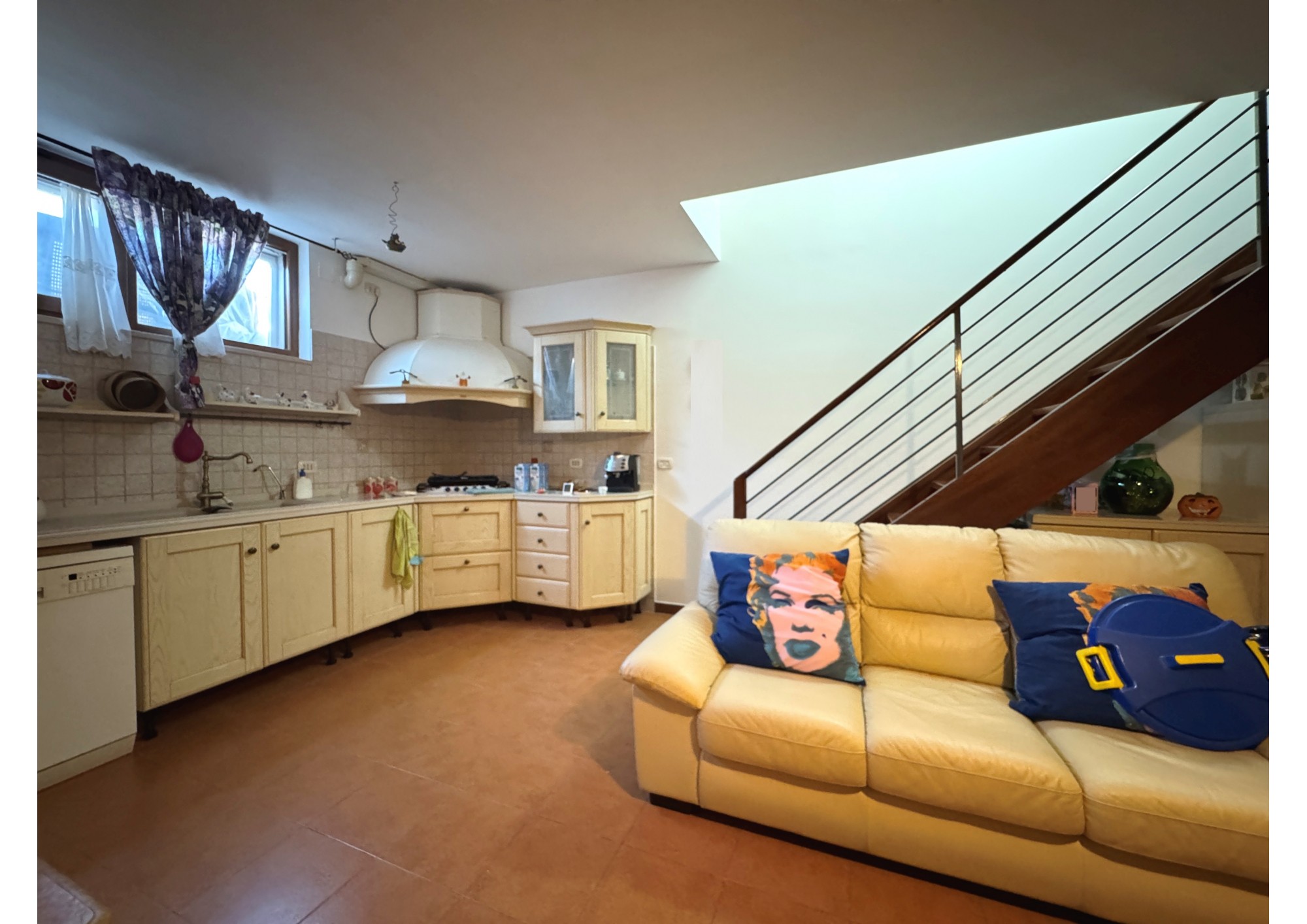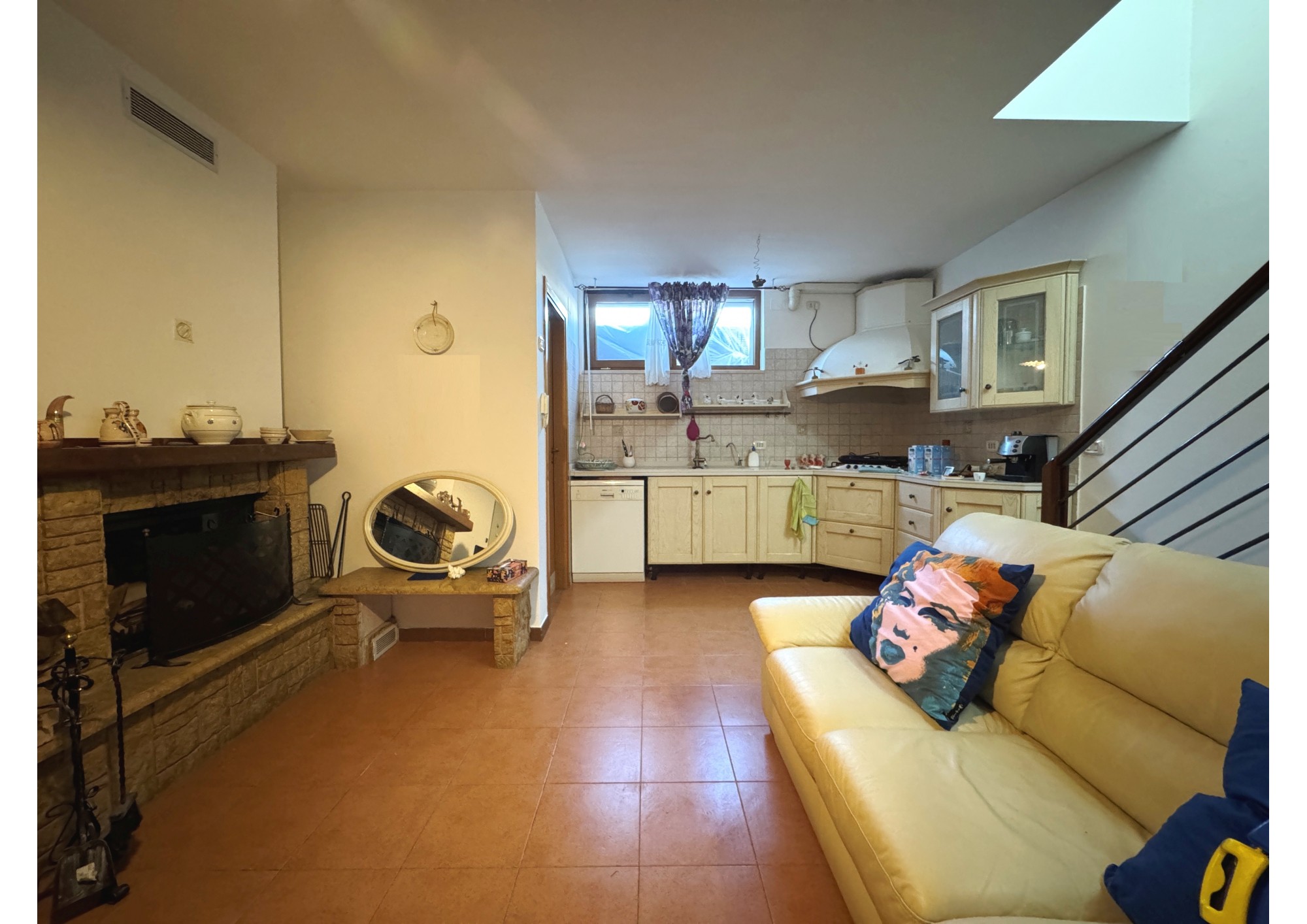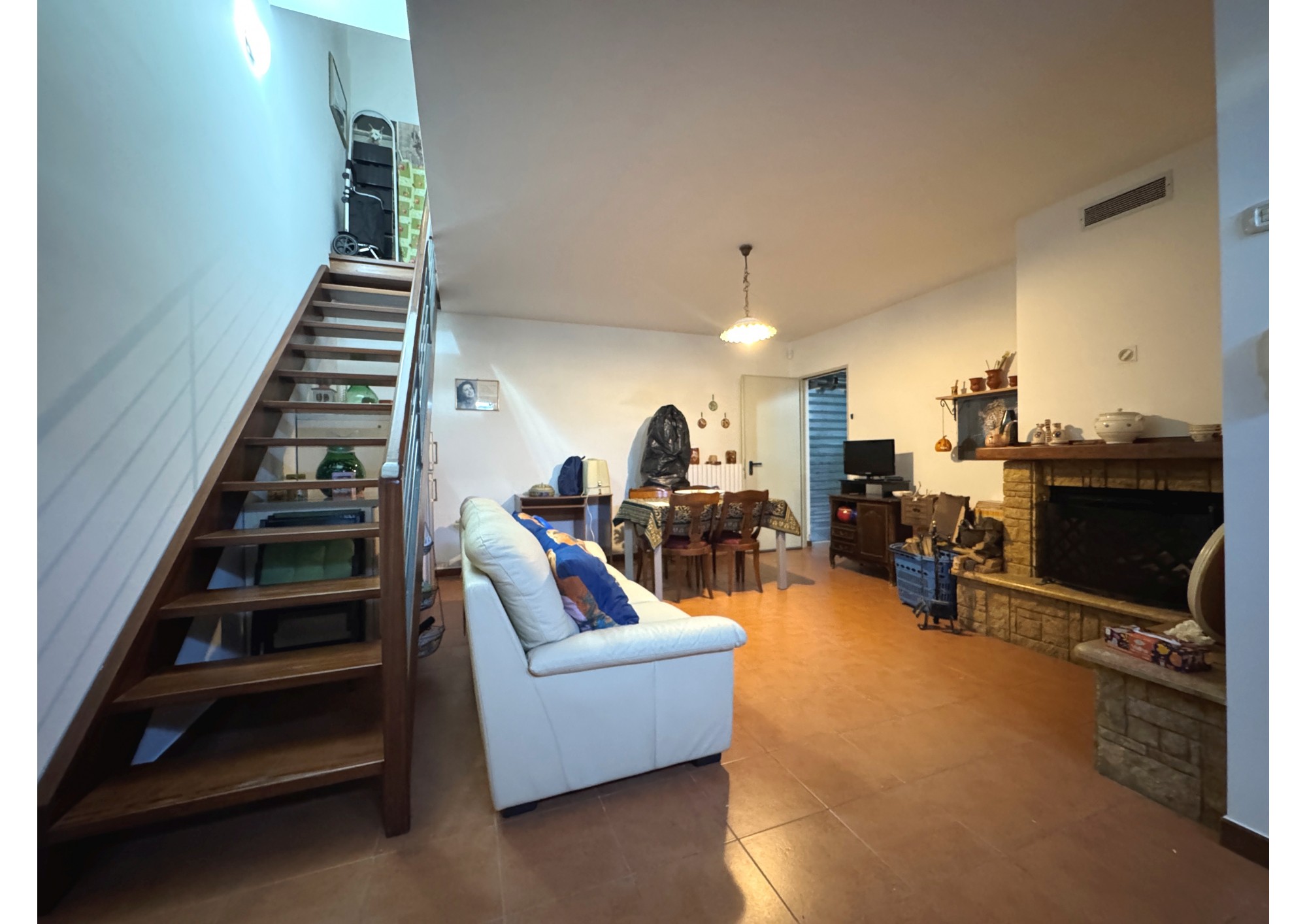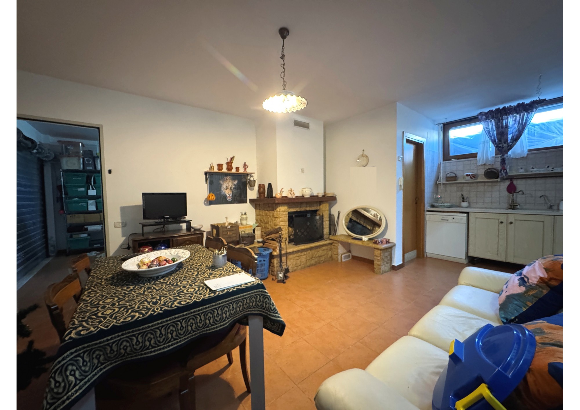 Tramite rampa interna si ha accesso alla tavernetta di circa 30 mq, completa di cucina, bagno e di un camino che ne dona tepore ed accoglienza.