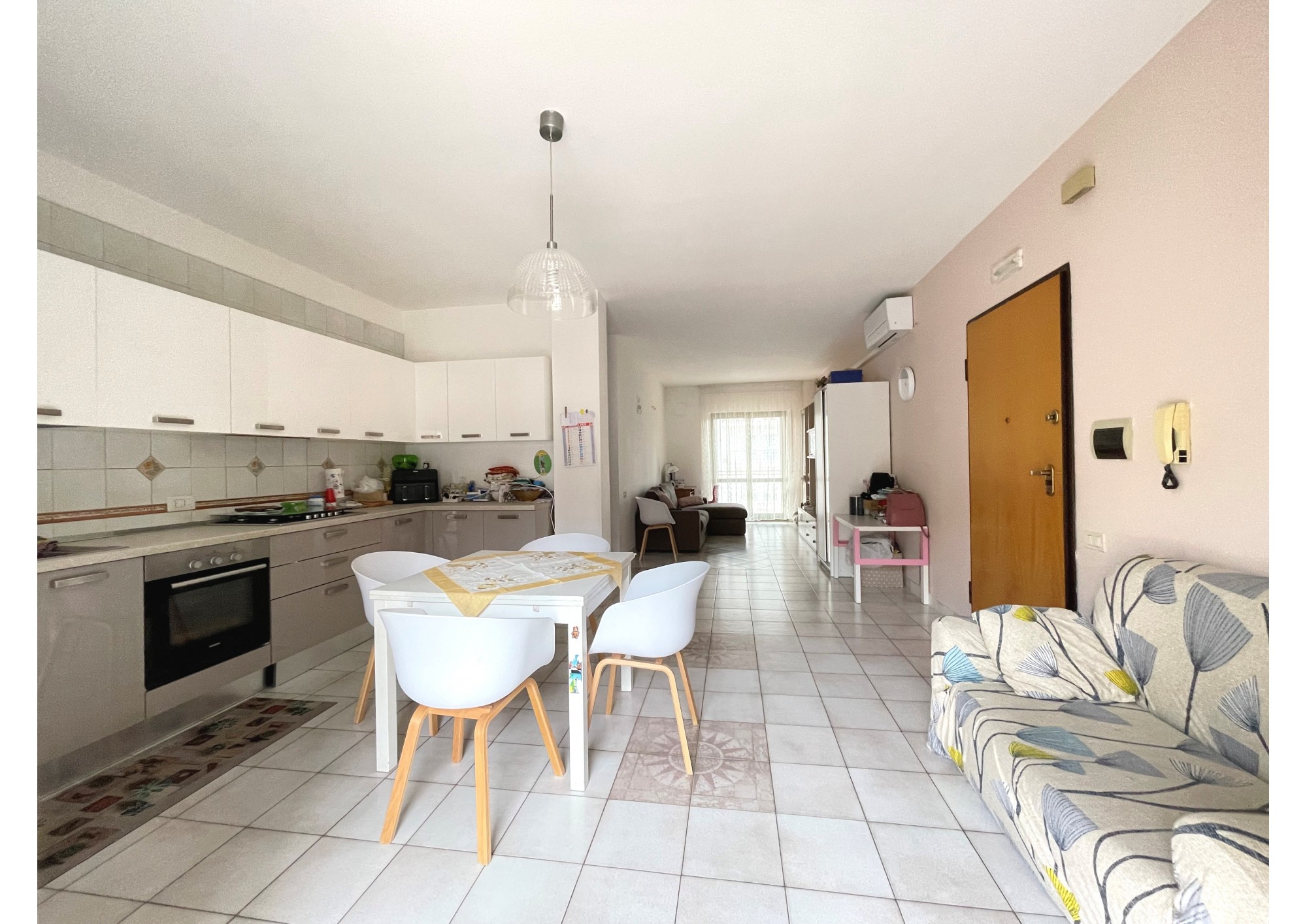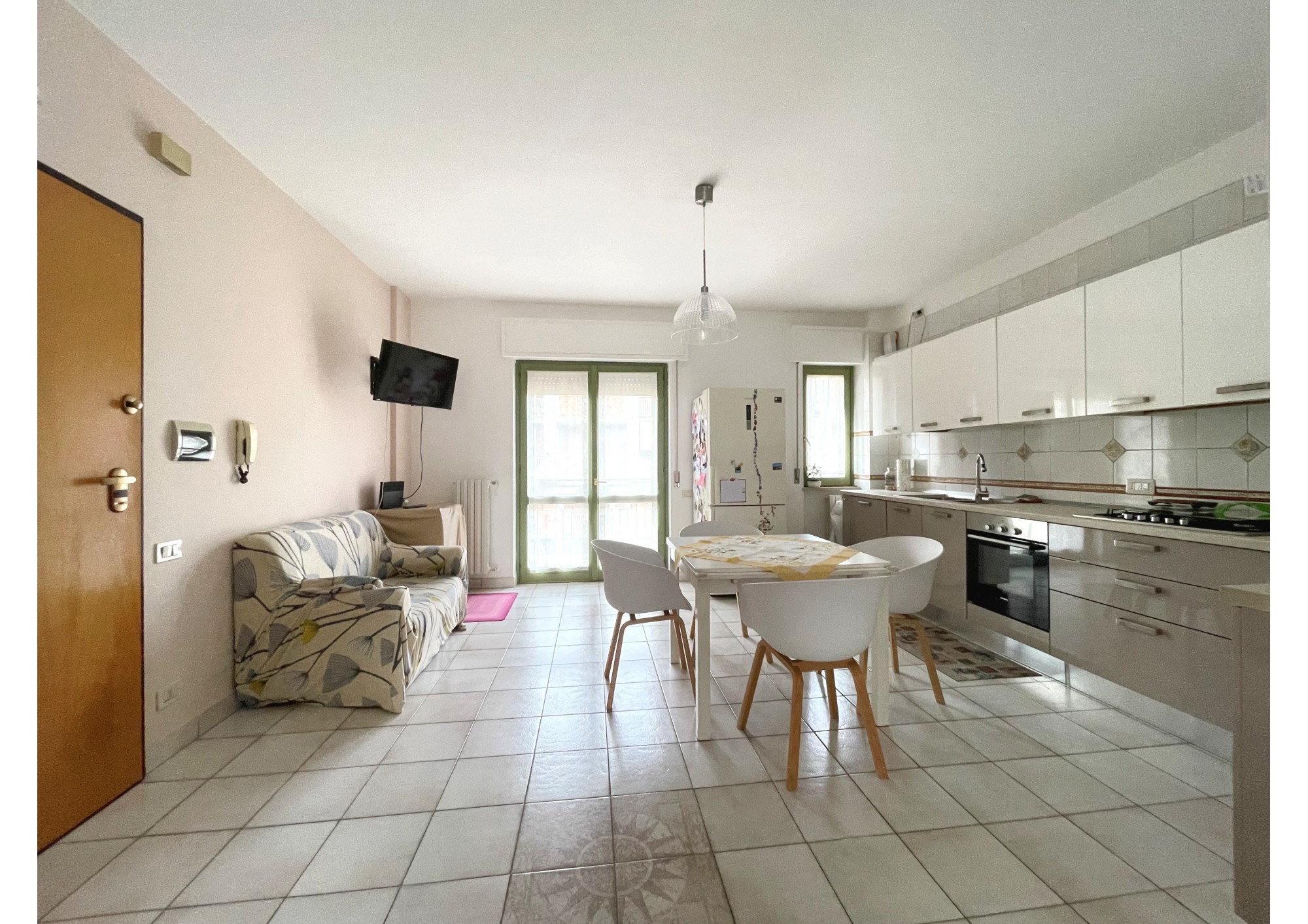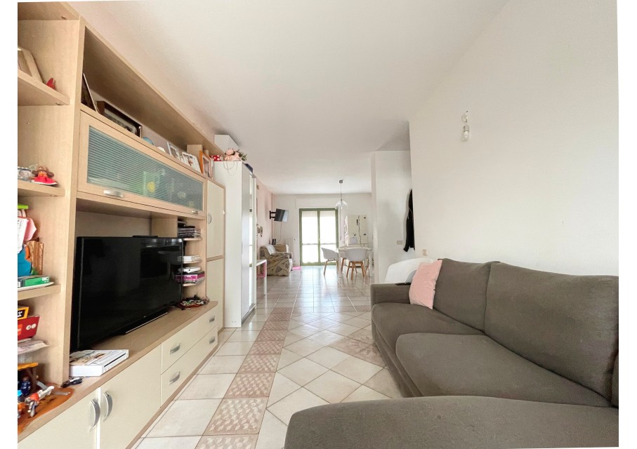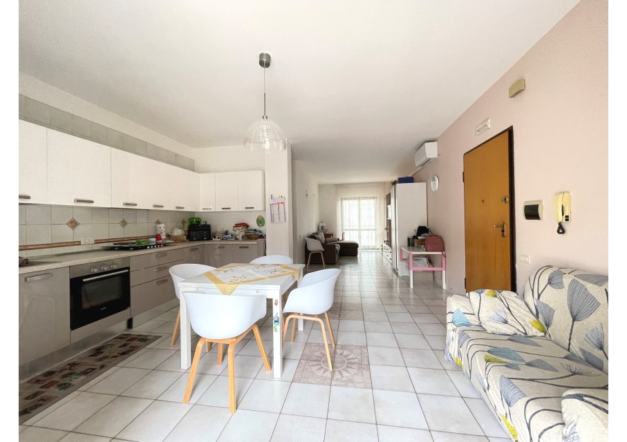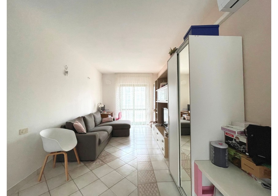 L' immobile, che misura circa 110 mq, è composto da un soggiorno/cucina in open space servita da due balconi posti in parallelo, uno dei quali provvisto di ripostiglio.