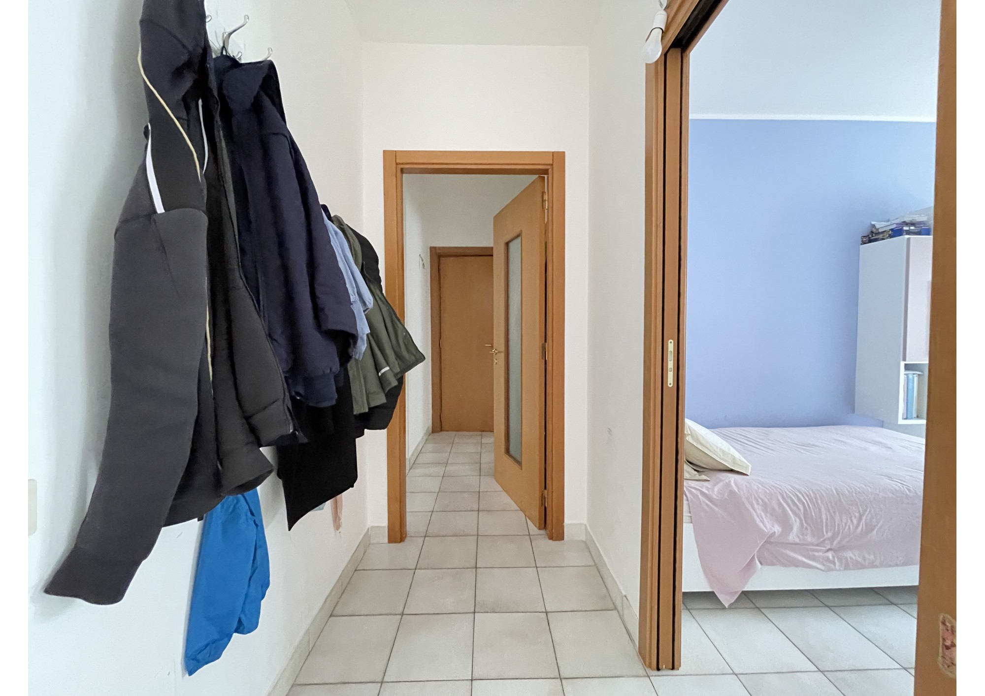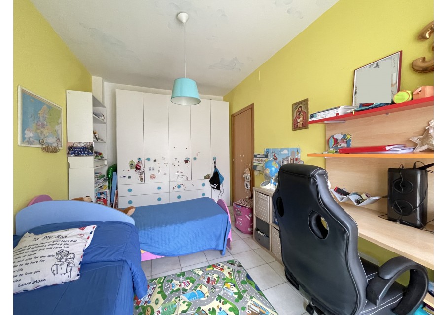 Un breve disimpegno dà accesso alla zona notte composta da tre camere da letto di comoda metratura e due bagni.
