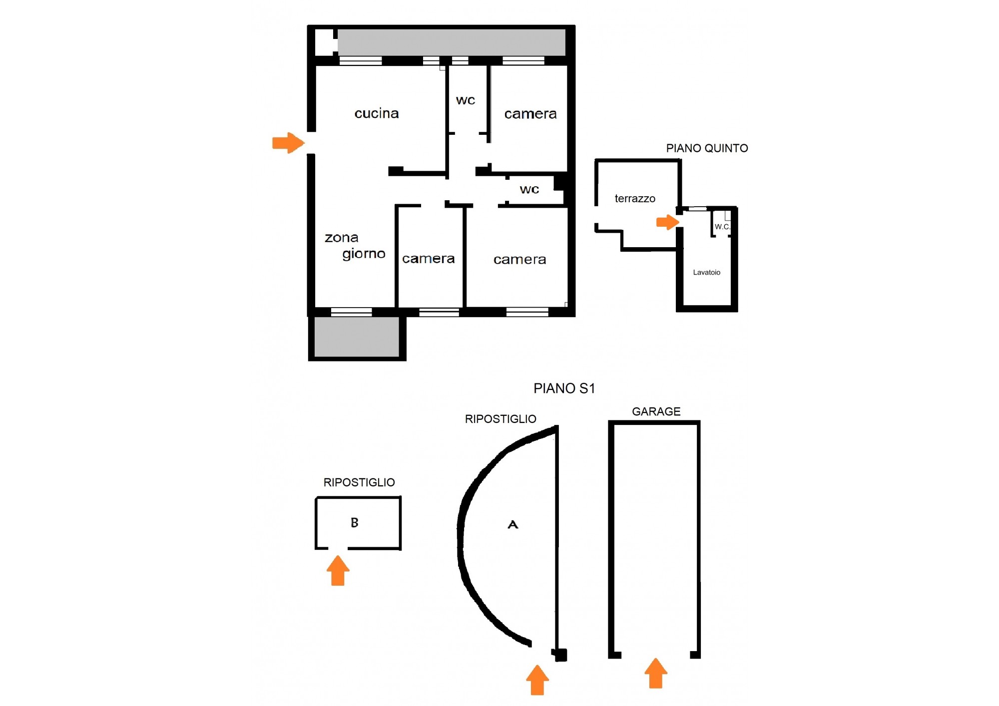 Garage: 30 mq Ripostiglio A: 22 mq Ripostiglio B: 6mq