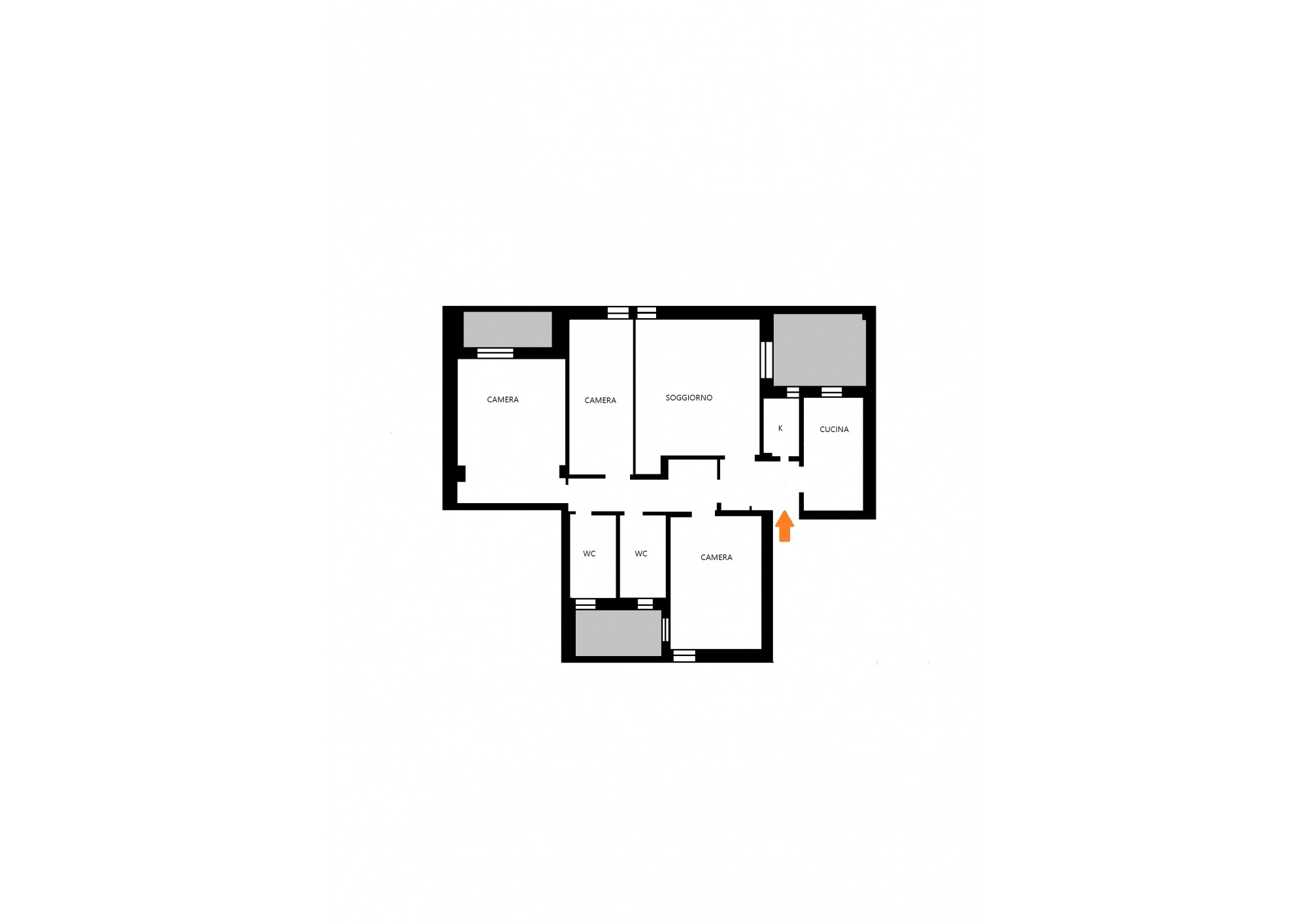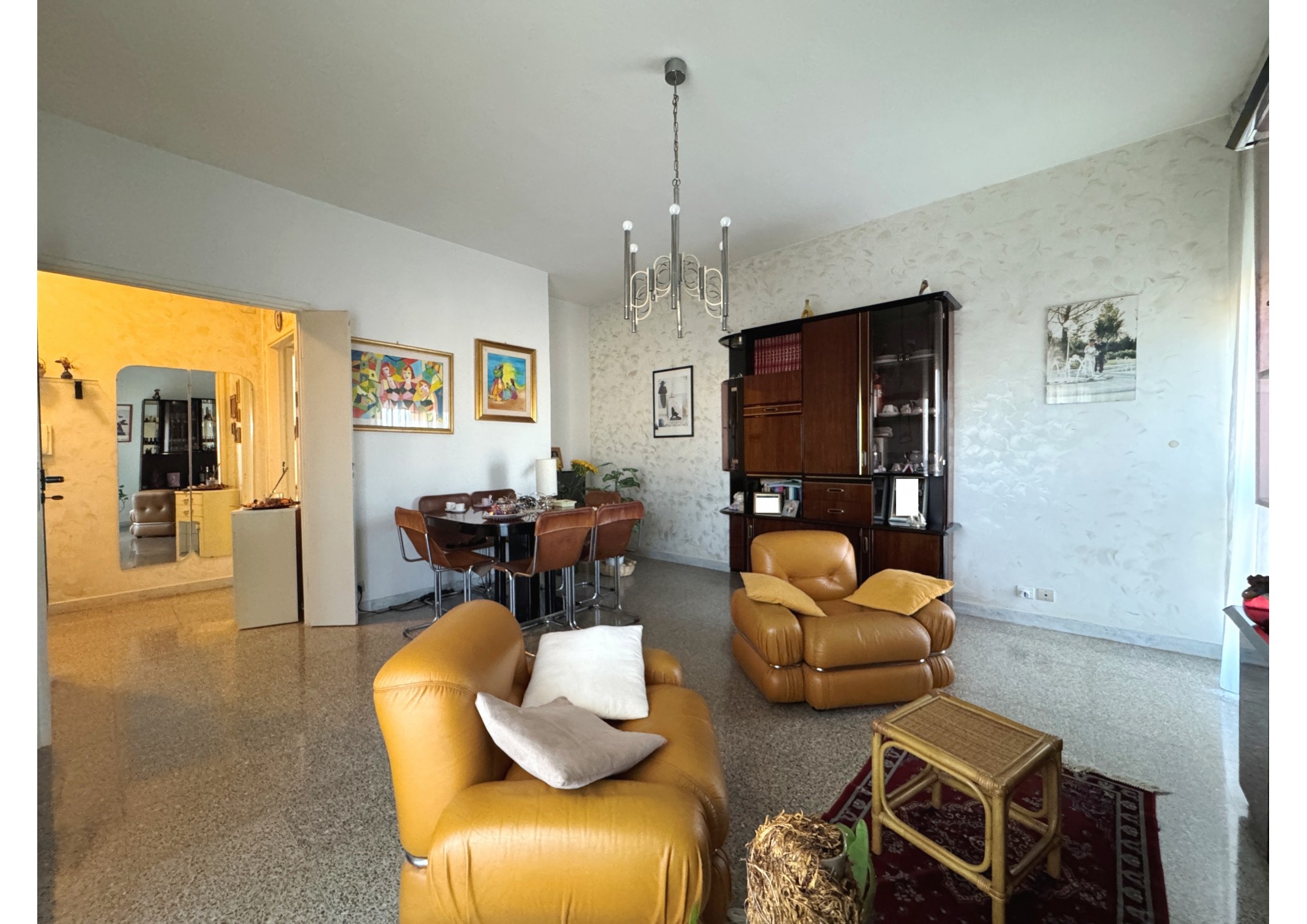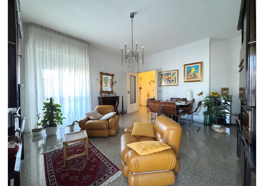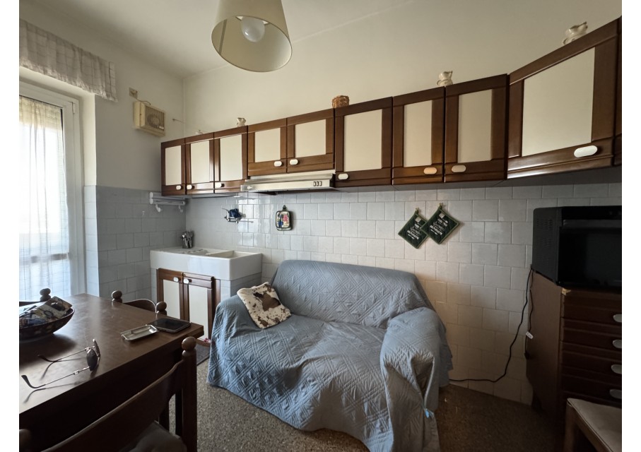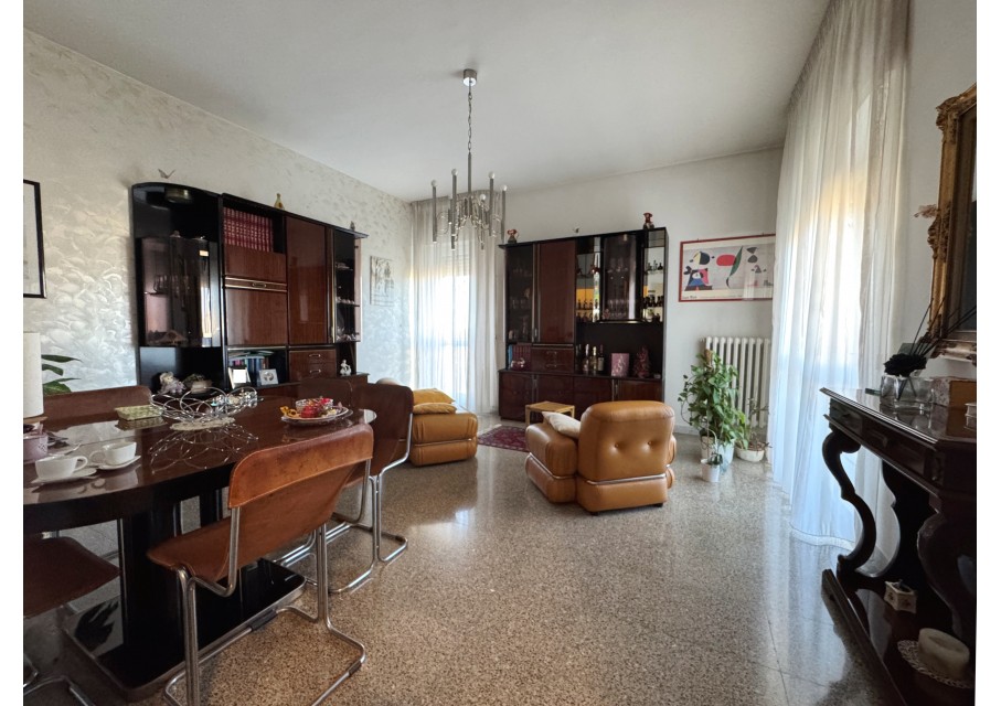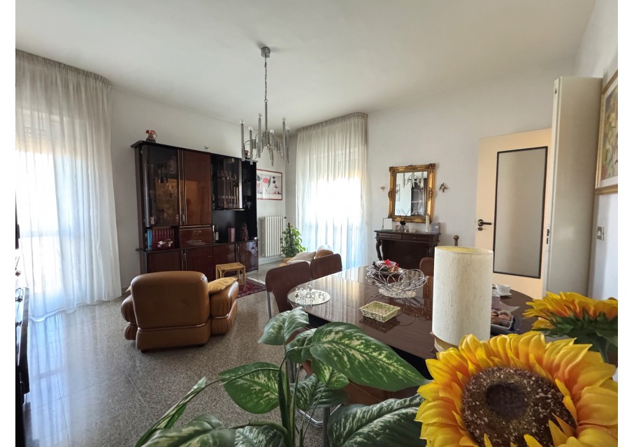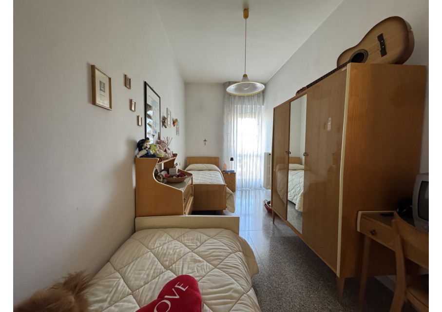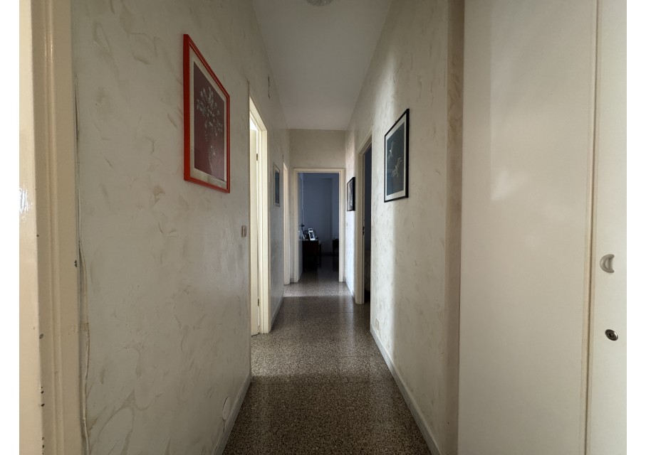 L' abitazione, di circa 105 mq è composto da ampio soggiorno, tinello con vano cucinotto, disimpegno, tre camere da letto e due bagni.