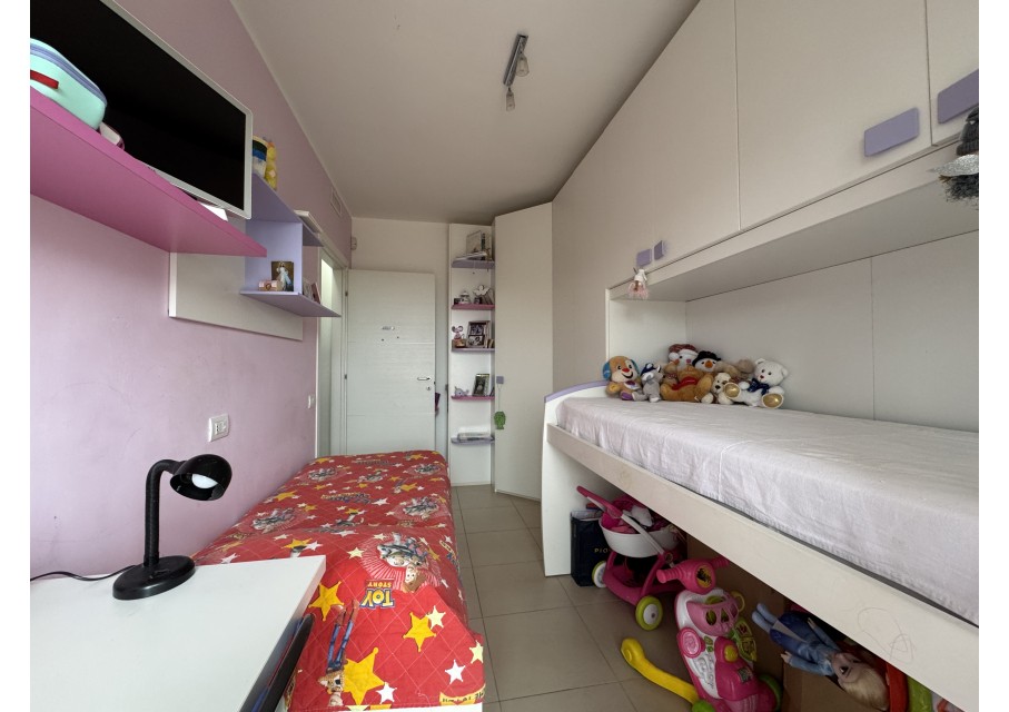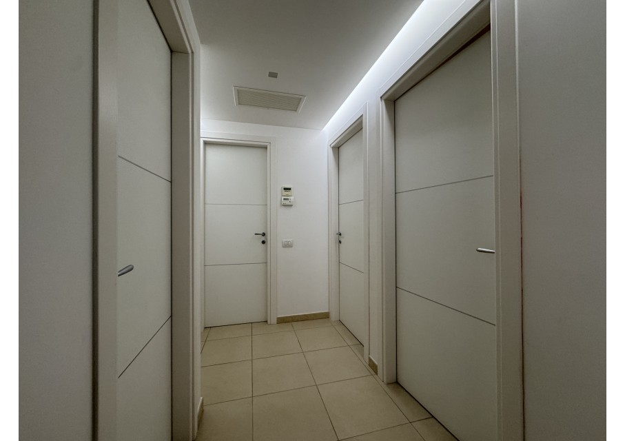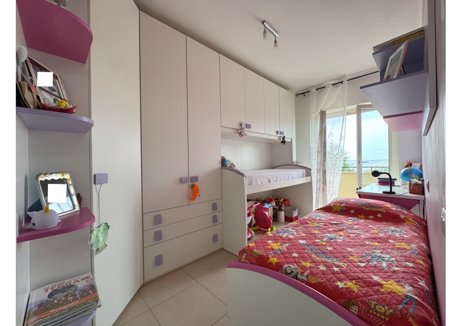 Tramite disimpegno si giunge nella zona notte con tre camere da letto, di cui due con accesso diretto ad un balcone panoramico, ed una terza camera attualmente adibita a studio oltre due bagni.