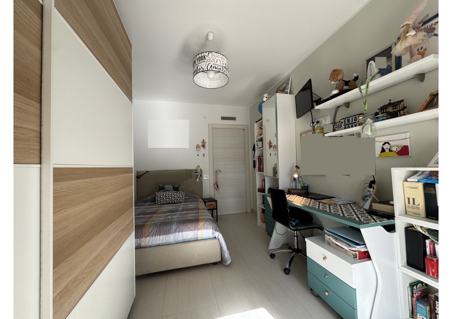 La zona notte è composta di due camere da letto, servite da un balcone di circa 10 mq oltre ad una terza stanza-studio (utilizzabile anche come terza camera da letto) e due bagni.