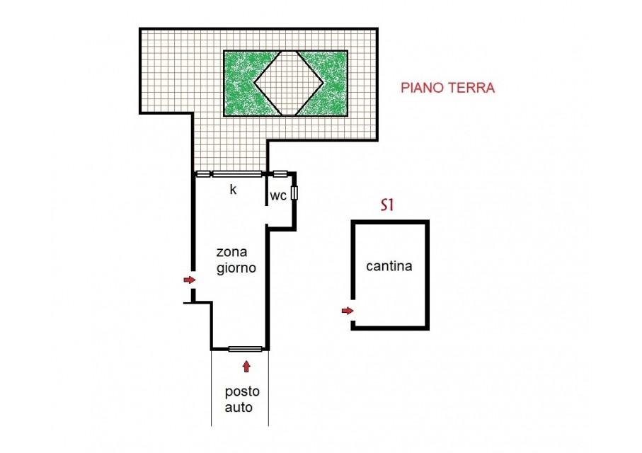 - un locale garage (categoria catastale C/6) di circa 40 mq con annesso giardino di 100 mq e completo di un bagno completo;